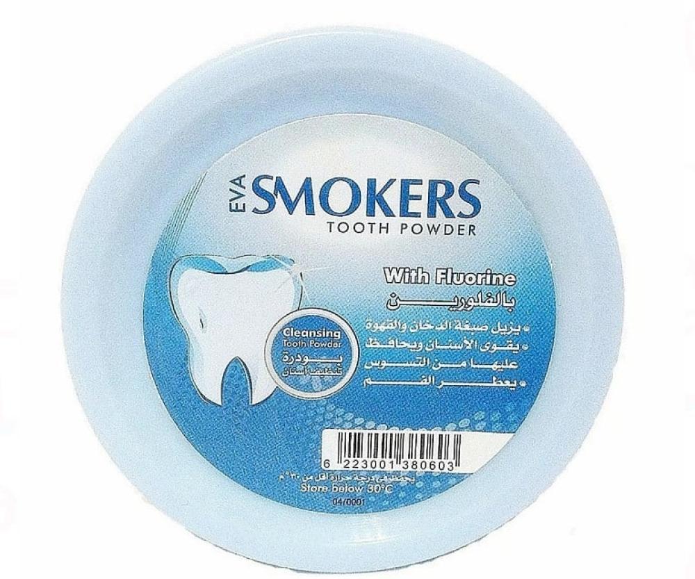 تقوم بودرة إيڤا بتبييض الأسنان وإعطائها الإنتعاش.