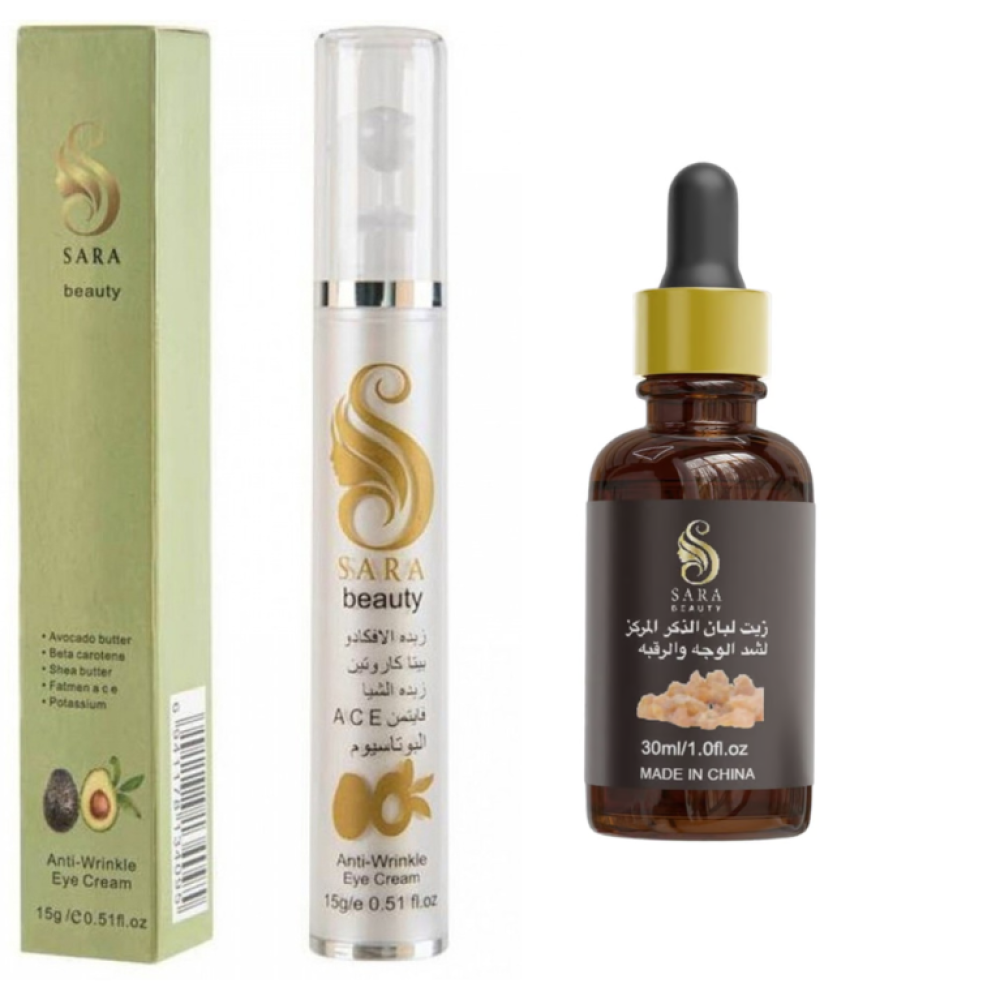 مجموعة سارة بيوتي سيروم ازالة الهالات وزيت لبان الذكر لشد البشرة