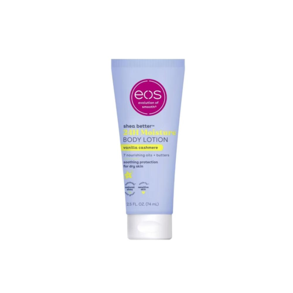 اي أو إس لوشن الجسم زبدة الشيا بالفانيليا والكشمير ترطيب 24 ساعة 74 مل