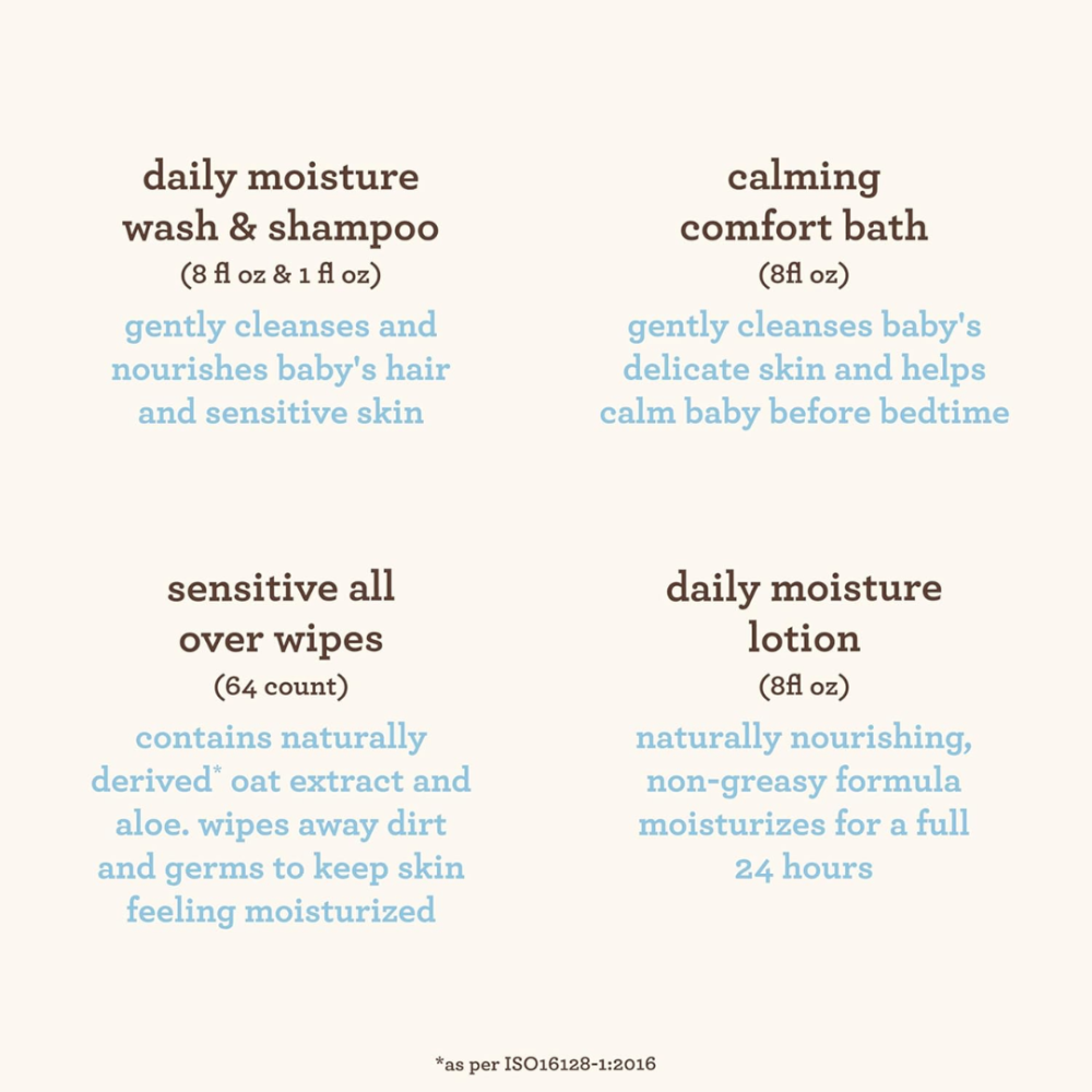 تحتوي مجموعة هدايا أفينو بيبي ويلكم بيبي على 5 منتجات أساسية للعناية بالبشرة للأطفال من أجل بشرة الطفل الحساسة. تتضمن مجموعة الهدايا الأساسية اللطيفة اليومية هذه منتجات تم تركيبها خصيصًا لتهدئة وتطهير وترطيب بشرة الطفل