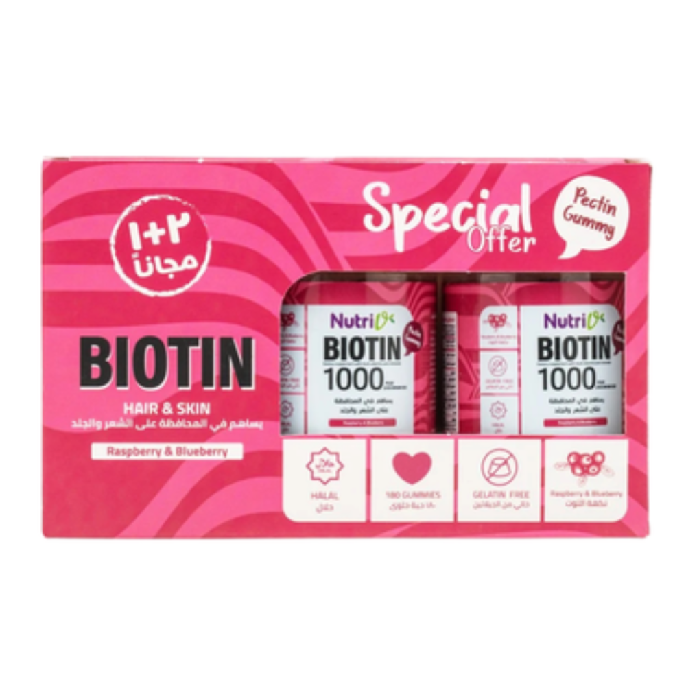 عرض 3 شهور نيوتري في جاميز بيوتين 1000 مع فيتامينات متعددة للشعر والاظافر 60 حلوي